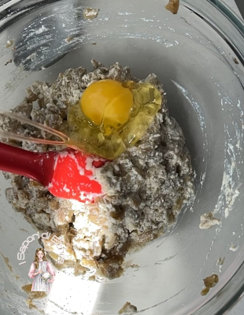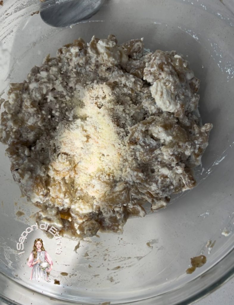 • La première chose à faire est de couper l’aubergine en petits morceaux et de la cuire à la poêle avec de l’huile d’olive et une gousse d’ail, pendant environ 10 minutes, le temps de la ramollir.