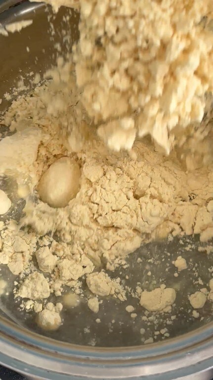 Dans une casserole, allumez le feu et réchauffez l’eau jusqu’à ébullition, puis versez la farine de pois chiches