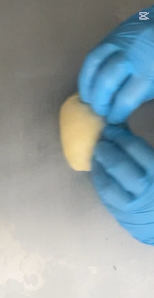 À ce stade, lorsque les parois du robot pâtissier sont propres, verser la pâte sur le plan de travail, donner quelques tours