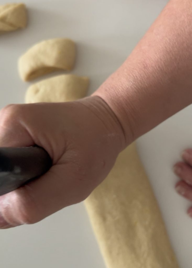 Étirer et rouler la pâte entre les mains et bien refermer en dessous