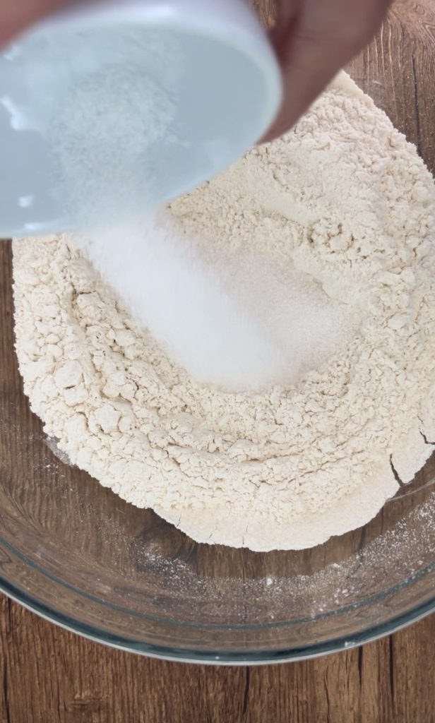 Dans un bol, mélanger les farines tamisées et le sucre.