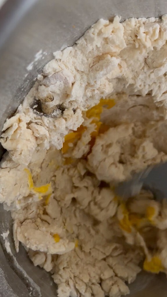 et le beurre que nous avons retiré du frigo une demi-heure avant de réaliser la pâte. Ajouter peu à peu