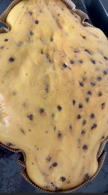 Comme sur la photo, j’ai retiré la pâte du frigo à 7 heures et elle a atteint la surface à 13 heures. Cuire la colombe dans la partie basse du four préchauffé statique à 180° pendant 50 minutes. Si en cours de cuisson vous voyez que la colombe devient trop foncée en surface, continuez la cuisson avec une feuille d’aluminium sur la colombe.