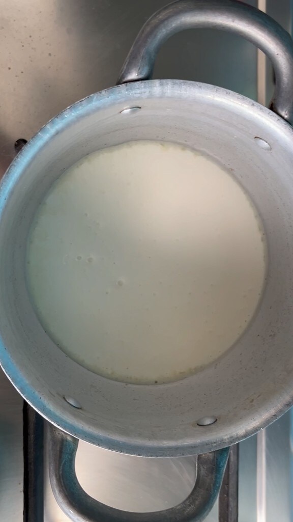Dans une casserole, chauffer la crème fraîche jusqu’à son point d’ébullition