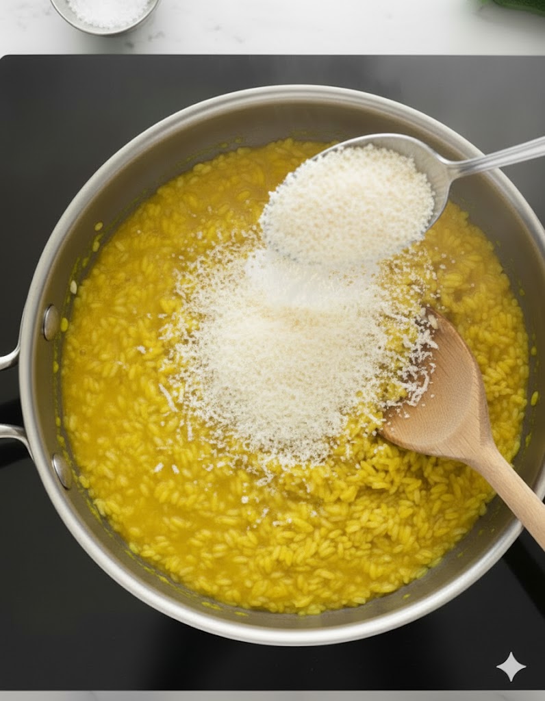 À la fin de la cuisson, éteindre le feu et mélanger avec le parmesan