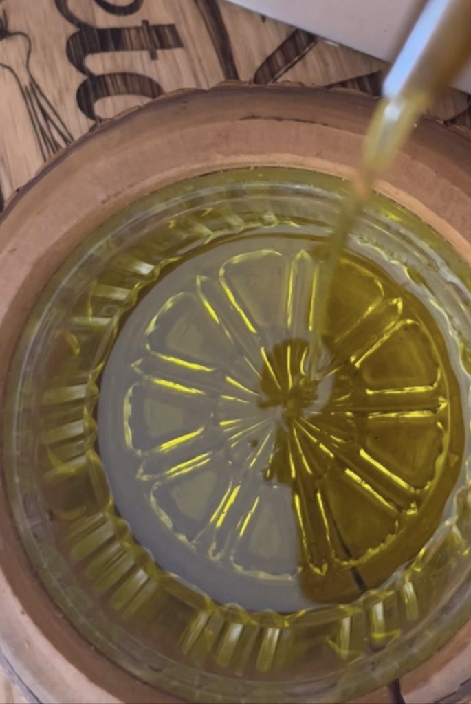 Verser la crème dans une assiette et l’assaisonner avec de l’huile d’olive extra vierge