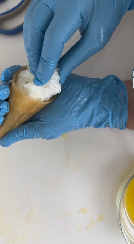 Disposer les cônes sur une plaque recouverte de papier sulfurisé et cuire au four statique à 180 degrés pendant environ 30 mn.