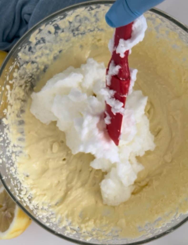 Après avoir bien mélangé la ricotta, incorporer délicatement les blancs d’œufs en faisant des mouvements lents du bas vers le haut