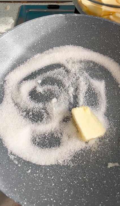 Dans une poêle, faire fondre le sucre et le beurre.