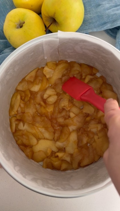 verser les pommes coupées en fines tranches