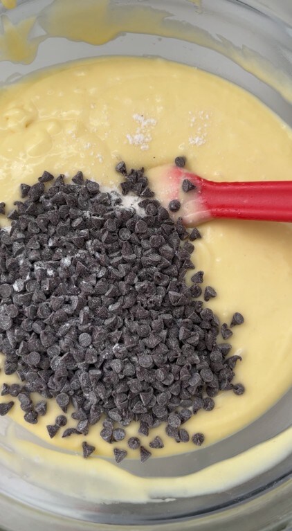 Et les pépites de chocolat préalablement passées dans la farine