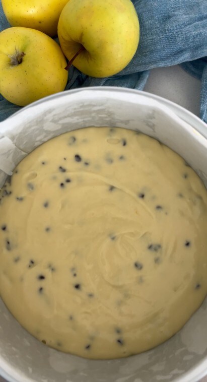 Verser dans le moule avec les pommes