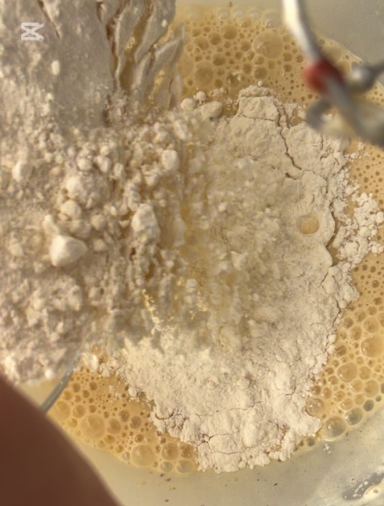 Continuer à travailler le mélange et ajouter l’huile de tournesol.