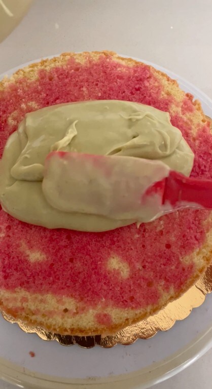 Ajouter maintenant la crème au pistache.
