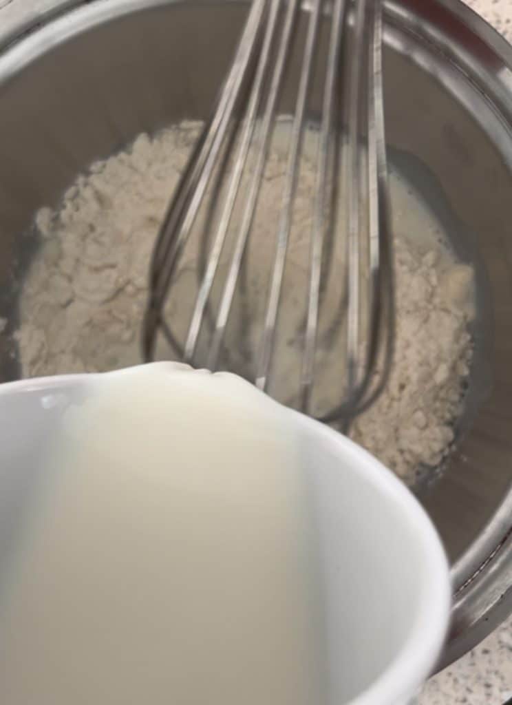 Gâteau moelleux pour plusieurs jours (avec roux au lait). Après avoir découvert cette méthode qui maintient les gâteaux moelleux longtemps, je pense que je ne l’abandonnerai jamais et elle m’accompagnera dans beaucoup de mes pains levés et gâteaux en général. Je vous explique brièvement de quoi nous parlons. Nous parlons de la technique du water roux, du roux au lait et du Tang Zhong. Les noms sont compliqués mais je vous assure que la technique est vraiment très simple et vous permettra d’obtenir des pâtes levées vraiment très moelleuses qui le restent pendant quelques jours. Les ingrédients sont seulement deux, à savoir l’eau et la farine pour les pains levés salés (water roux) et le lait et la farine pour les gâteaux levés, dans ce cas-ci le gâteau. Le bon côté de cette technique est que d’habitude, pour ne pas utiliser trop de graisses dans les gâteaux, on évite de mettre du beurre et on met de l’huile, mais les gâteaux sont légèrement secs à l’intérieur. En ajoutant le roux au lait ou le water roux, cela n’arrive pas. Si vous voulez, vous pouvez le préparer la veille de la réalisation du gâteau. Le pourcentage de farine et d’eau ou de farine et de lait est de 1:5, donc si vous utilisez par exemple 100 g de farine, vous devez mettre 500 g d’eau ou de lait. Si vous préférez, vous pouvez remplacer le lait par de l’eau dans cette recette, c’est pareil. Moi, en général, je préfère le lait dans les gâteaux.