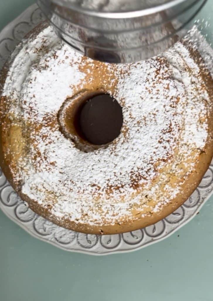 Cuire dans un four statique préchauffé à 180°C pendant 20 minutes et abaisser la température à 160°C pour 30 minutes supplémentaires. Saupoudrer de beaucoup de sucre glace et servir