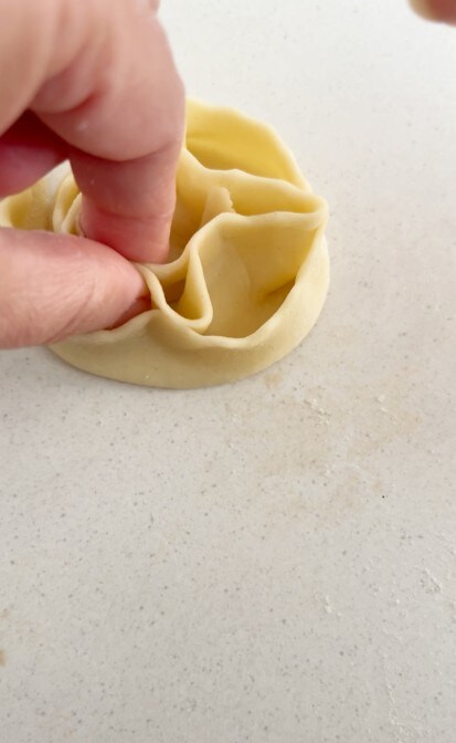 Il est important de bien pincer la pâte, sinon les cartellate s’ouvriront pendant la cuisson ; je conseille donc de mouiller le bout des doigts avec de l’eau.