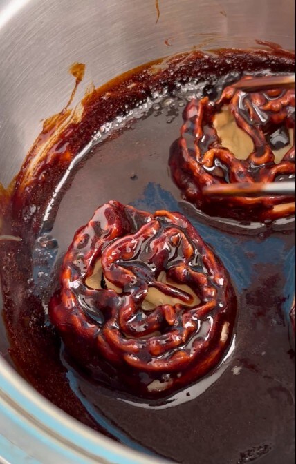 • passer les cartellate dans le miel en les retournant pour bien le répartir