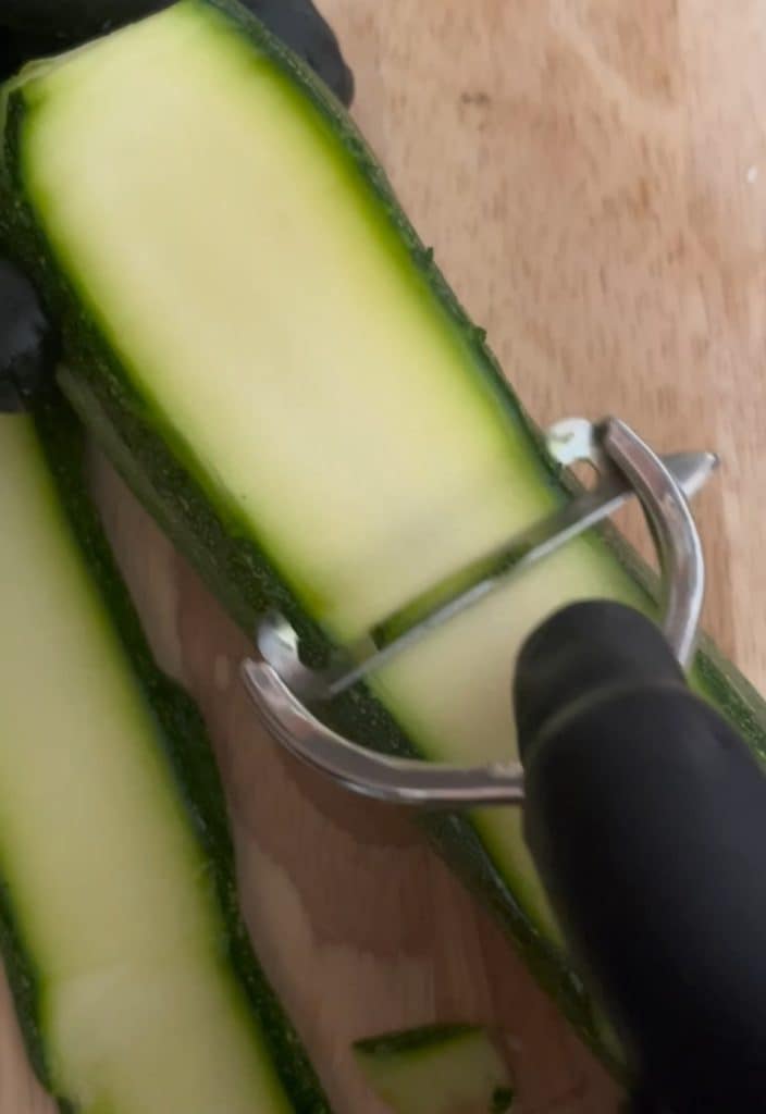 Avec une mandoline, couper les courgettes en fines tranches dans le sens de la longueur