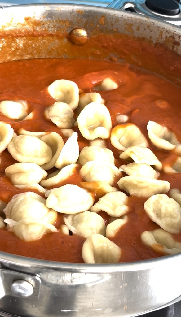 Faites cuire les orecchiette dans de l’eau salée pendant 5 mn