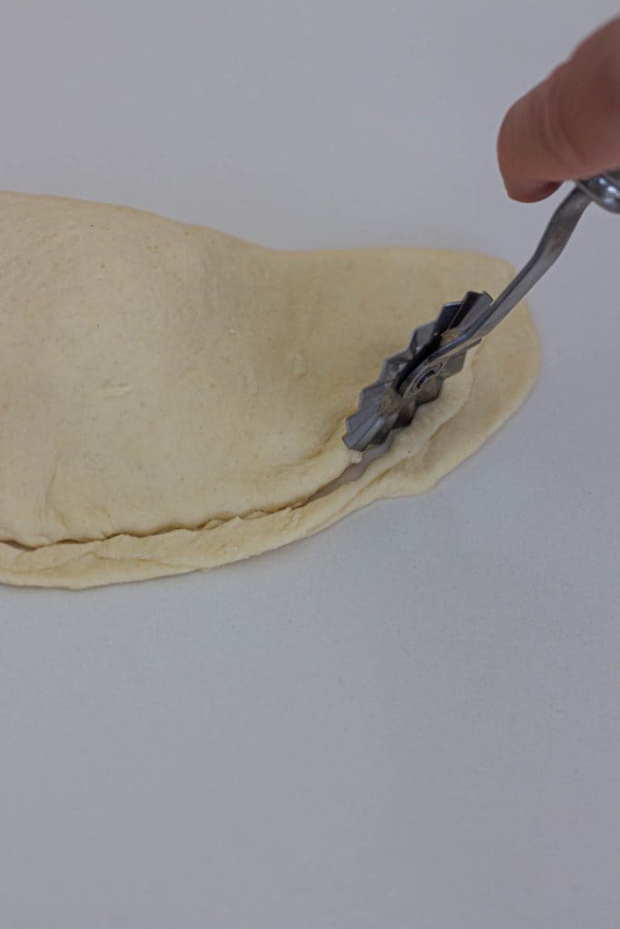 Il y a plusieurs façons de fermer un panzerotto. Soit fermer et sceller avec la roulette.