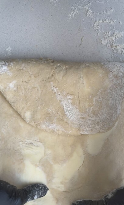 À ce point, pliez la pâte en deux comme si c’était un livre. Vous obtiendrez 4 couches