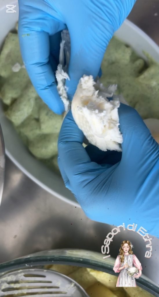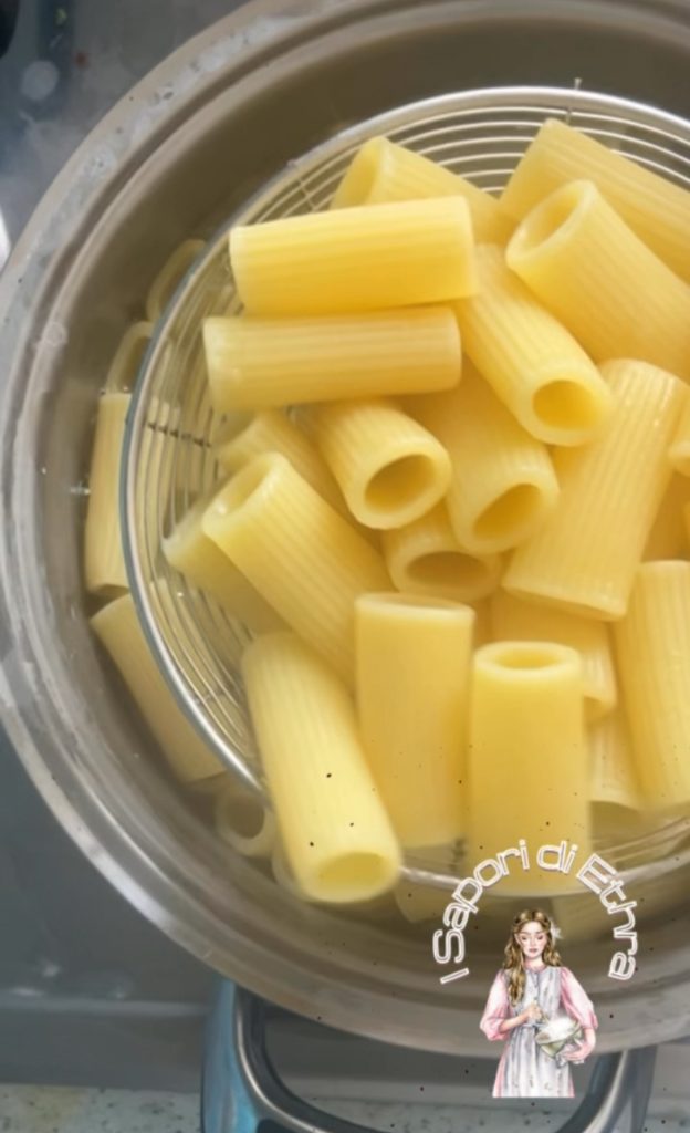Commencer à faire bouillir les rigatoni. Une fois cuits, bien les égoutter et les verser dans un bol pour refroidir. Pour éviter que les pâtes ne collent, versez un peu d’huile d’olive.