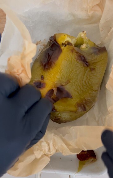 Fermer le poivron dans le papier cuisson et cuire dans un four préchauffé à 180° pendant 20 min