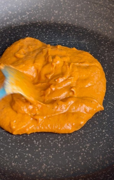 Dans une poêle antiadhésive, verser la sauce obtenue.