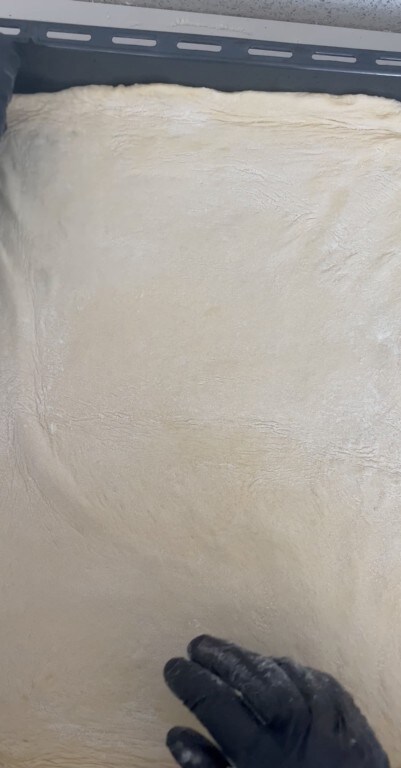 Après 5 heures, étaler sur le plan de travail avec un rouleau à pâtisserie