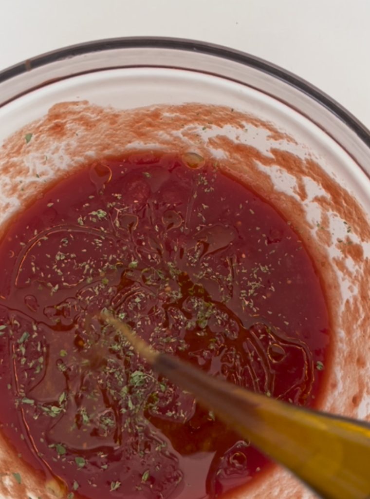assaisonner avec la tomate généreusement jusqu’aux bords et cuire les pizzette à la température maximale de votre four, le mien 250 degrés, initialement à la base du four pendant 12 mn et les trois dernières minutes au-dessus pour 3 mn.