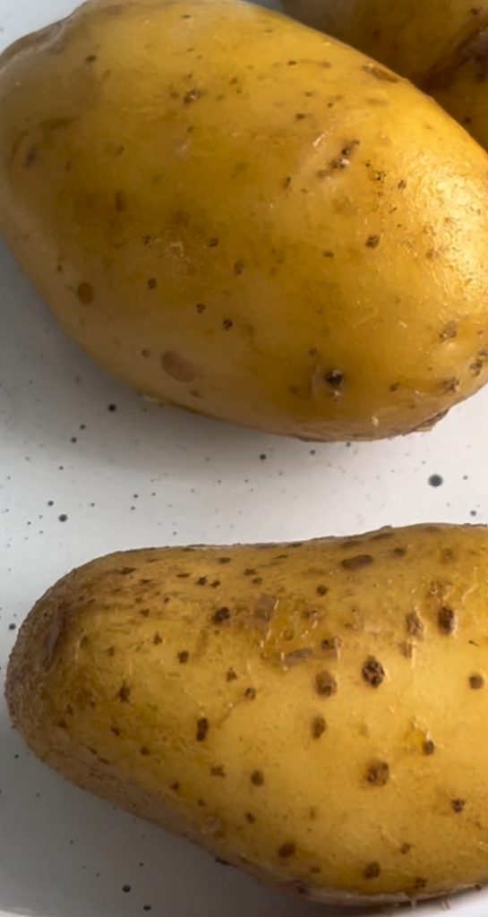 - 8 pommes de terre, avec la peau, cuites, bouillies