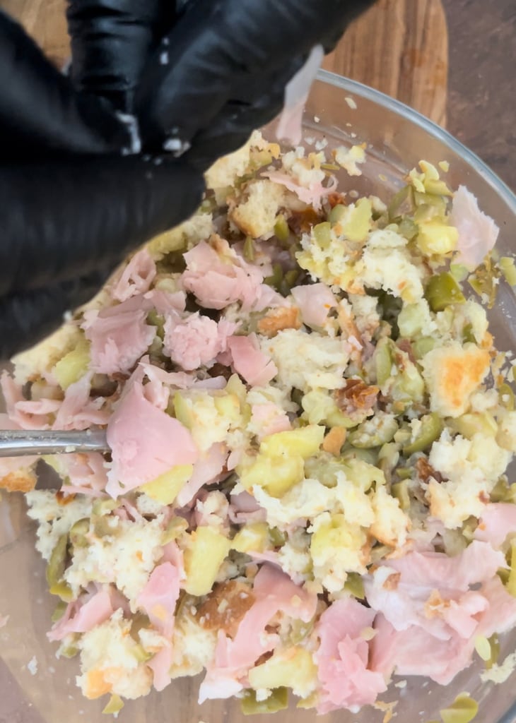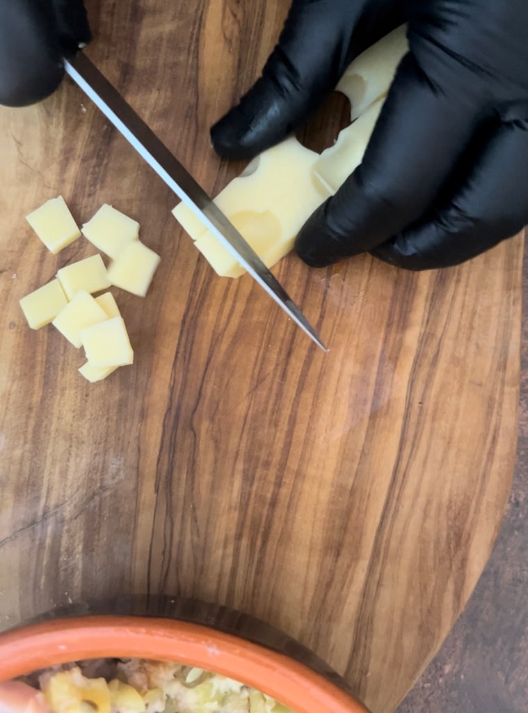Ajouter dans la farce aussi les morceaux d’emmental.