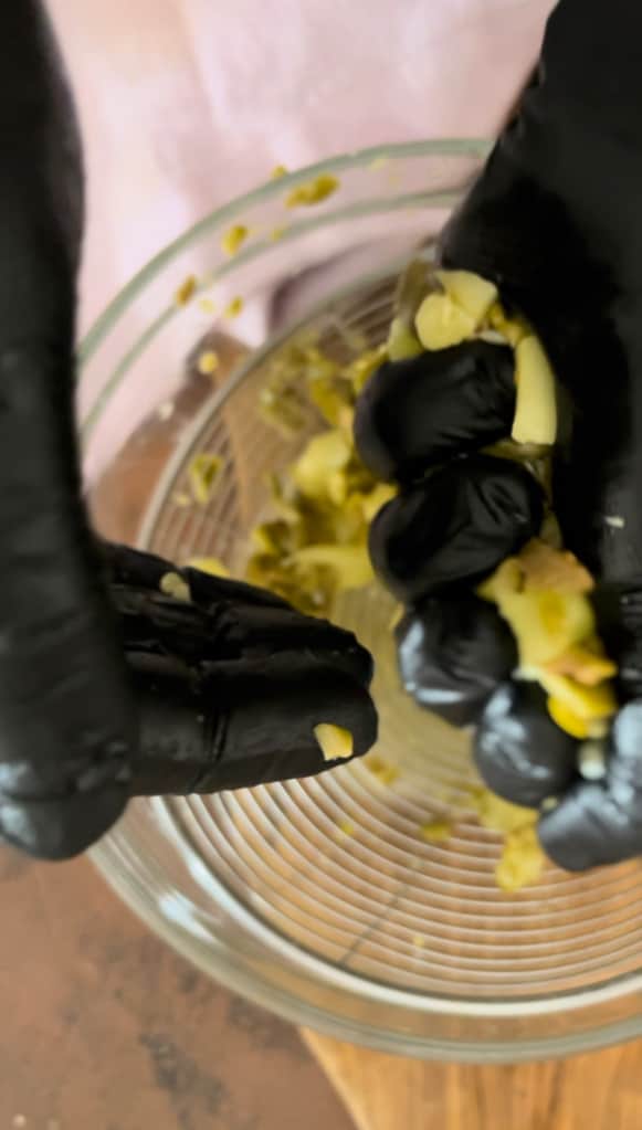 Bien presser avec les mains pour éliminer le liquide de la courgette.