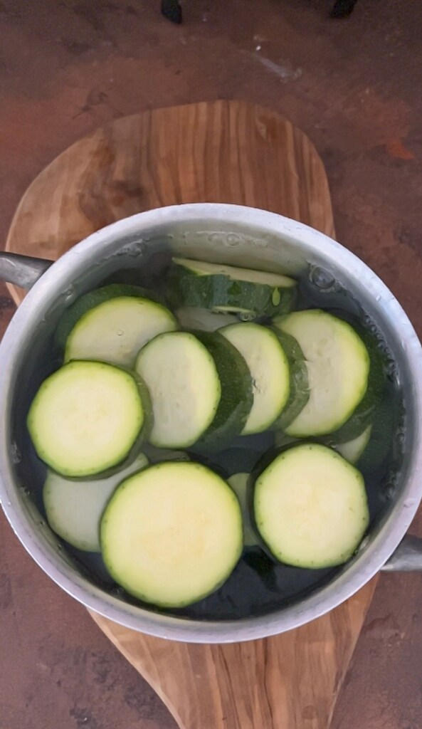 Faire bouillir les courgettes dans beaucoup d’eau salée pendant environ 10 minutes.