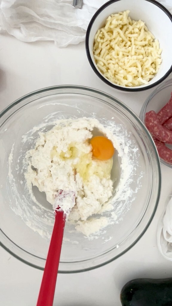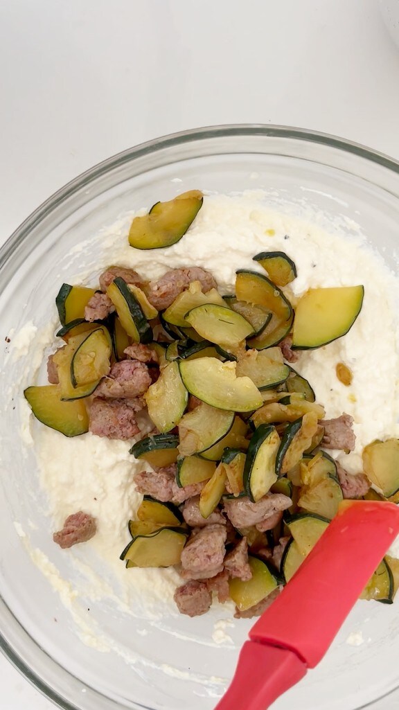 Insérer les courgettes et la saucisse dans le mélange de ricotta