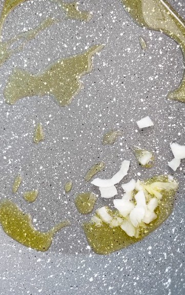 Chauffer l’huile d’olive avec l’oignon finement coupé