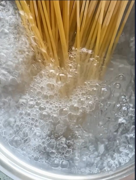 La première chose à faire est de faire cuire les spaghetti dans une grande quantité d’eau salée.