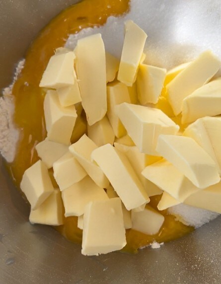 A ce stade, diviser la pâte sablée en deux et l’étaler entre deux feuilles de papier sulfurisé.
