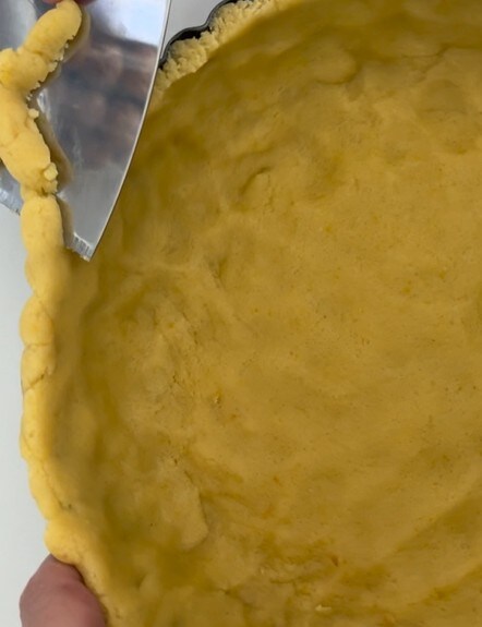 Garnir le moule à tarte en éliminant ce qui dépasse.