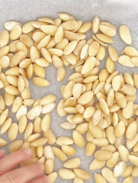 La première chose à faire est de peler et torréfier les amandes au four à 180° pendant 8/10 mn