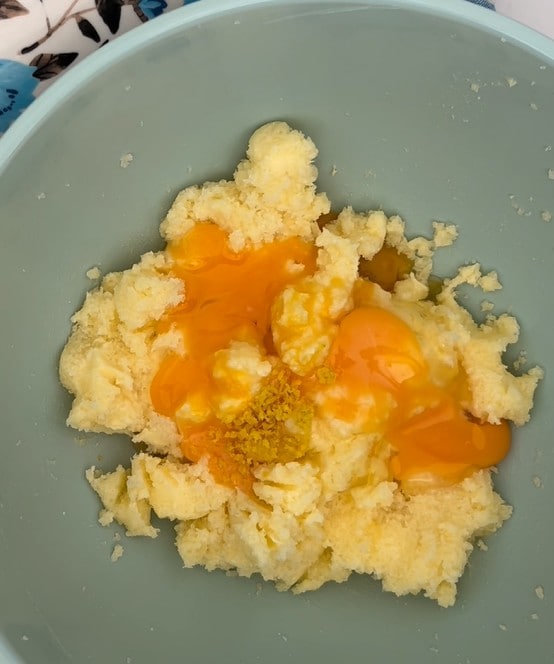 Ajouter les œufs et le zeste de citron.