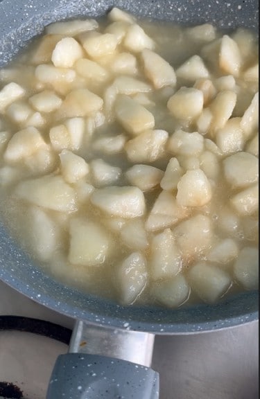 Ajouter les amandes aux poires et mettre de côté.