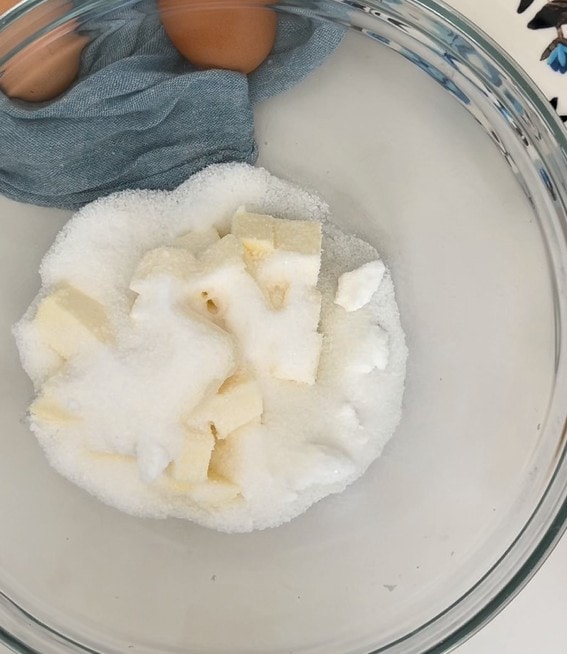 Dans un bol, mélanger le beurre et le sucre pour préparer la pâte sablée