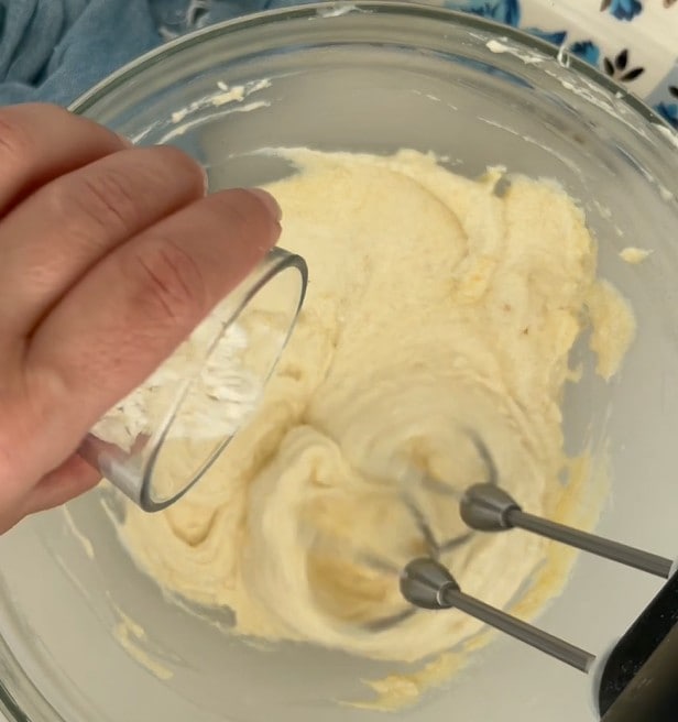La farine 00 et travailler avec le fouet électrique jusqu’à obtenir un mélange lisse.