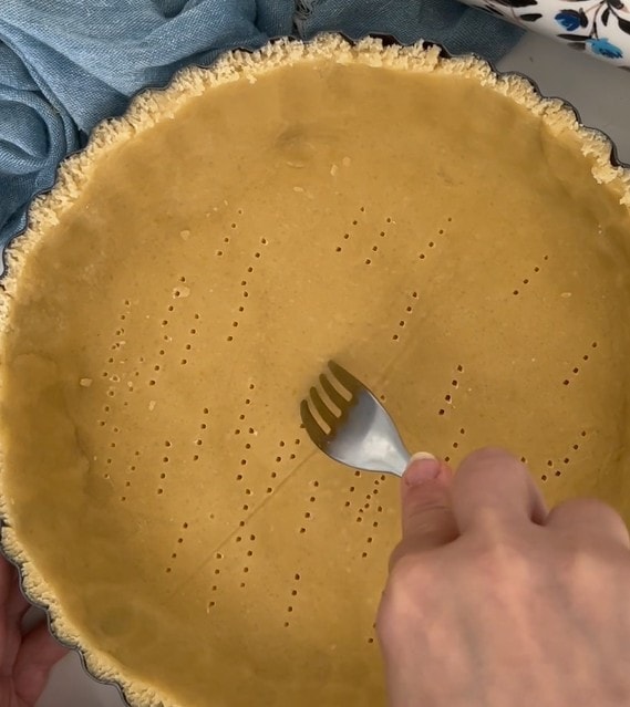 Piquer la pâte sablée avec une fourchette.
