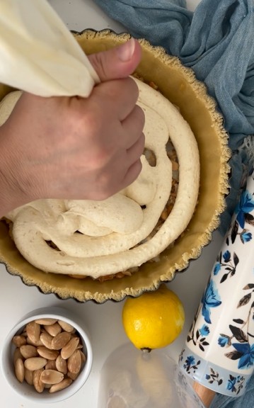 et pour finir avec la poche à douille la crème frangipane.