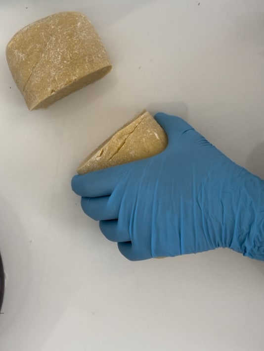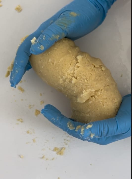 Travailler d’abord dans le bol puis transférer sur le plan de travail et compacter la pâte.