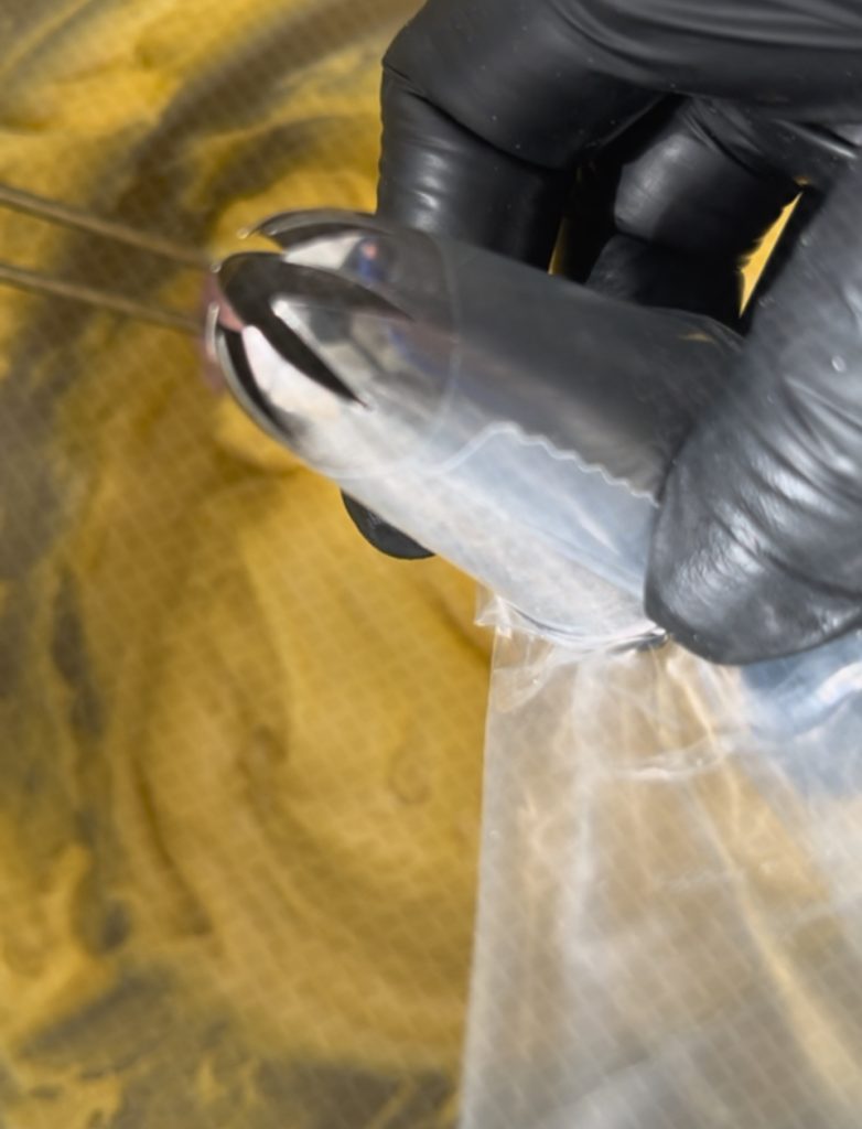À ce stade, préparer une poche à douille avec une douille étoilée et insérer la pâte à choux