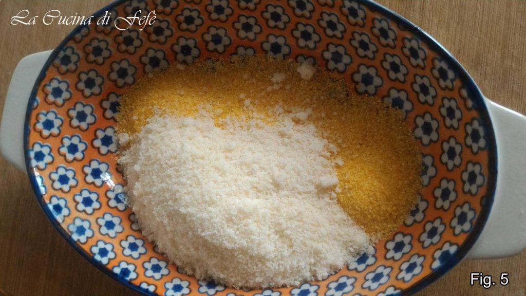 Dans un autre bol ou récipient spacieux, mélangez la semoule de maïs avec le parmesan et la ricotta salée (fig. 5).